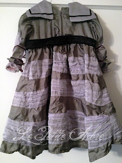 The yoke is from a vintage sailor pattern like this one, look through your old patterns like I did and modify something similar and add it to the Rapunzel sleeve. Or buy one, like the one sold here. I used the sheer to overlay the gray on the collar as well as added black ribbon to the boarder.