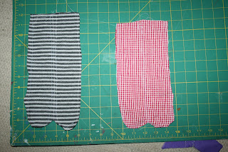 Now after I made four I made a few modifications cause I didn’t like how small the dress was to the legs, that and I made a neck. Turning this the way in the tutorial was hard, with the legs and all. So I made the last two I made, I stitched one side and turned it above one arm up to the head.