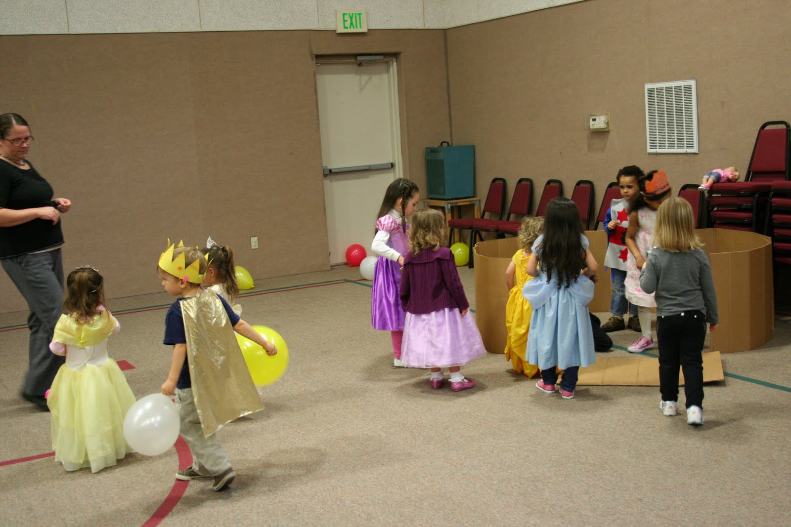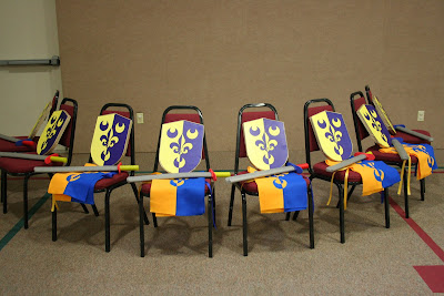 For our daughters 3rd birthday party we decided to have a Princess and Knights party for about 20 kids. We rented out the gym of our church to keep the disaster away from our house. Plus, it gave the kids plenty of room to run around.