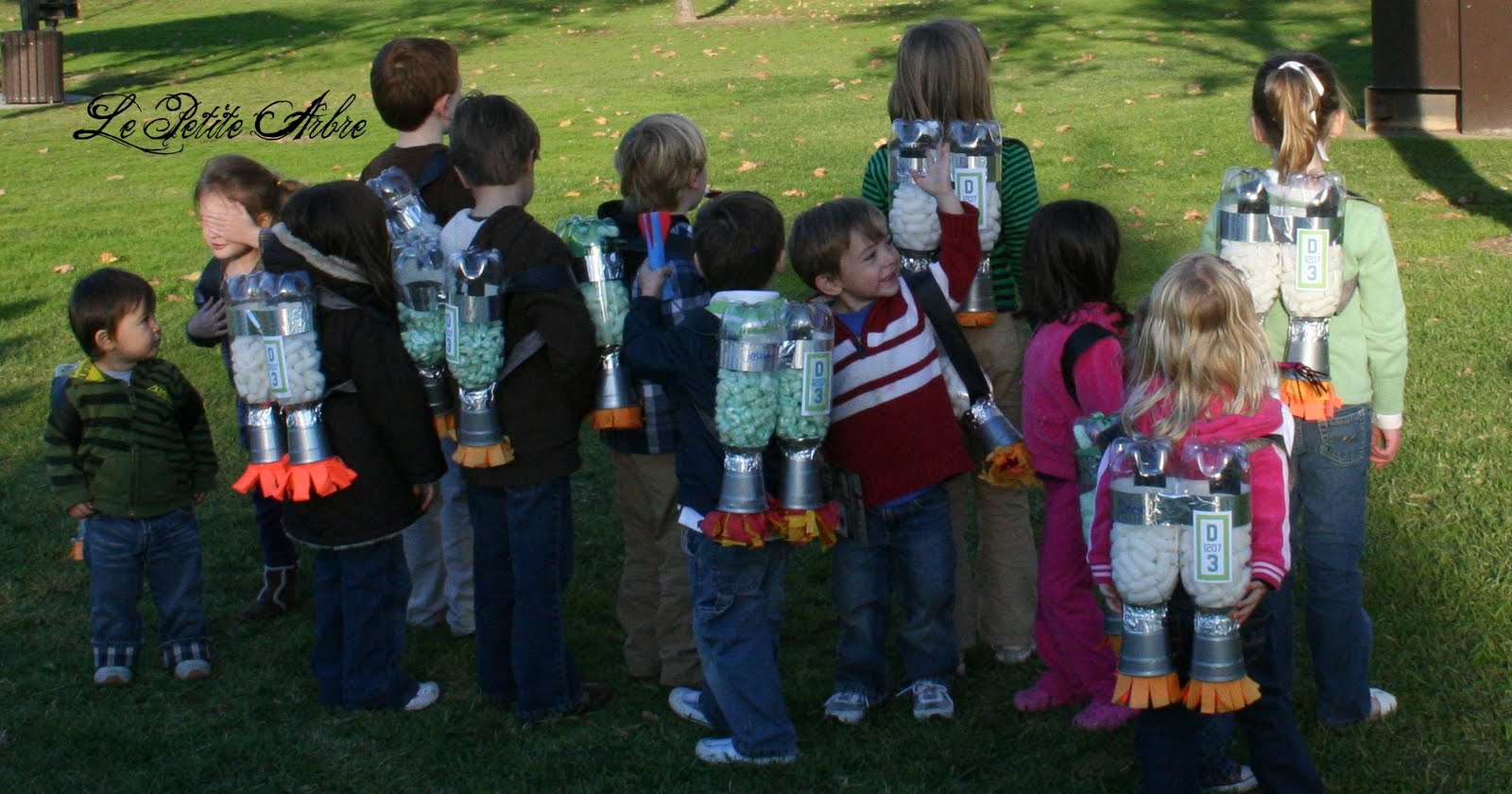 The kids each got a soda bottle jet pack to wear for the party. Super simple to make.