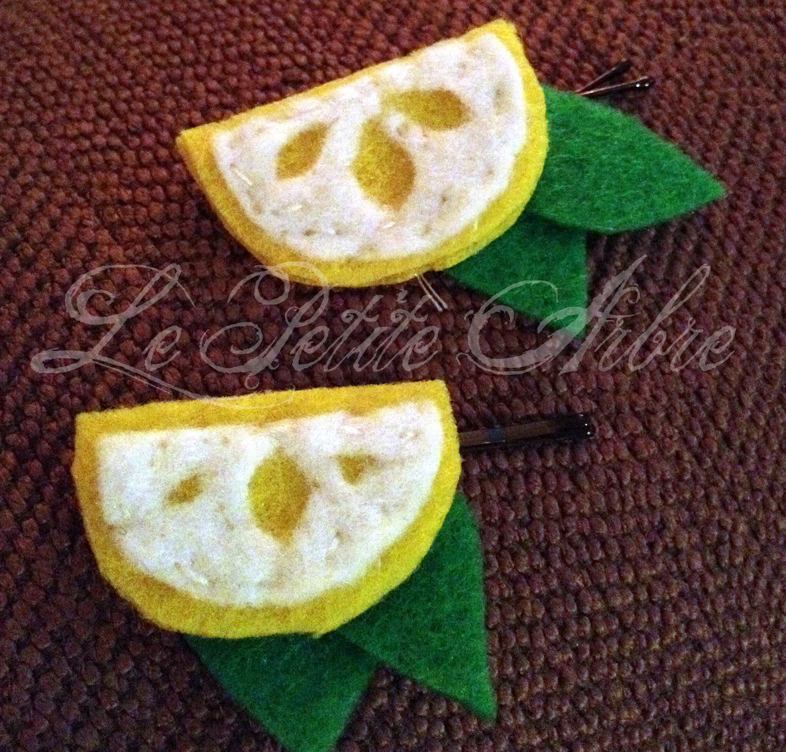 For party favors, I picked up most of them here and supplemented else where. I also used left over fabric plus some extra I bought to make a banner.I just had to make things for everyone so I made stiff felt lemon slice hair clips sewed onto bobby pins for the girls. Then I made 17″ square handkerchiefs for the boys.