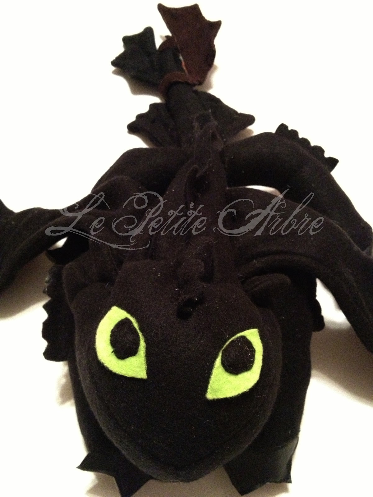 Of course, I did modify the pattern a bit. I moved the wings to the side rather than both coming out of the back like a dragonfly. I dragon rider has to sit somewhere. I also added the prosthetic tail fin, used vinyl for the toes and enlarged it by quite a bit. I added some extra spines like the one from the movie.