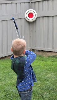 Upon arrival, children were led by wisps across the lawn into the castle entrance. Each kid received Tartans, those plaid sashes, of different patterns for representing their chosen family clan. They played Scottish themed games such as Caber Toss, archery, and even a bean bag toss made of nylon and rocks. Their craft was to make a bear claw necklace which doubles as an awesome party favor.